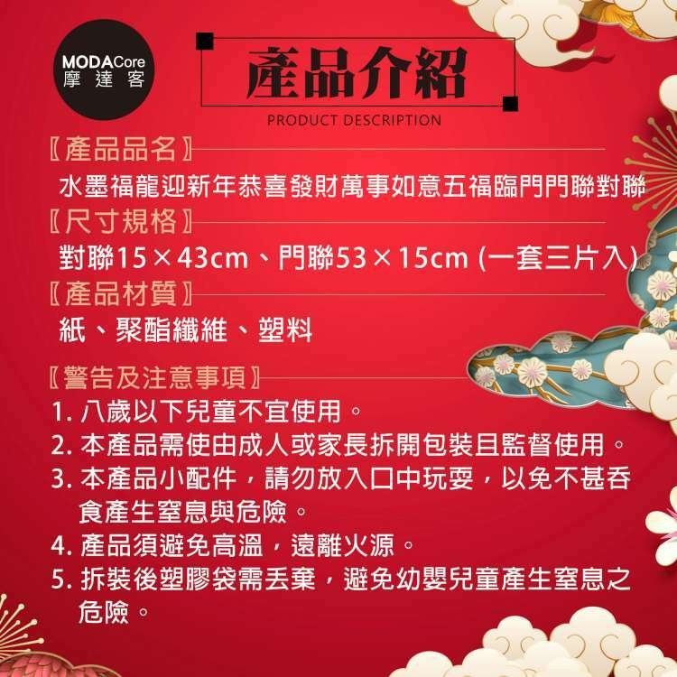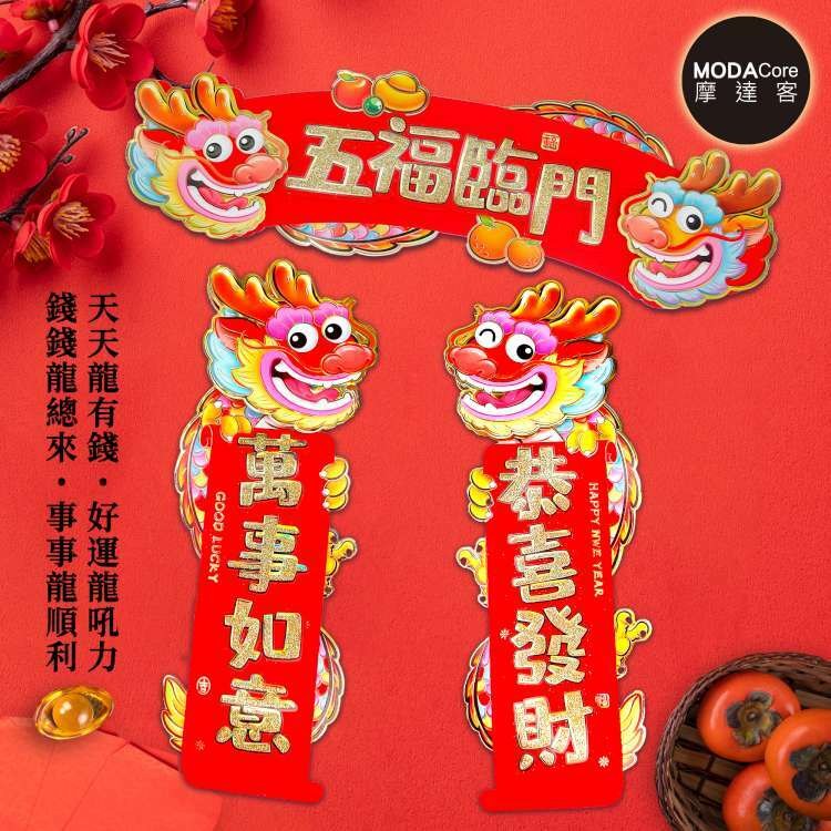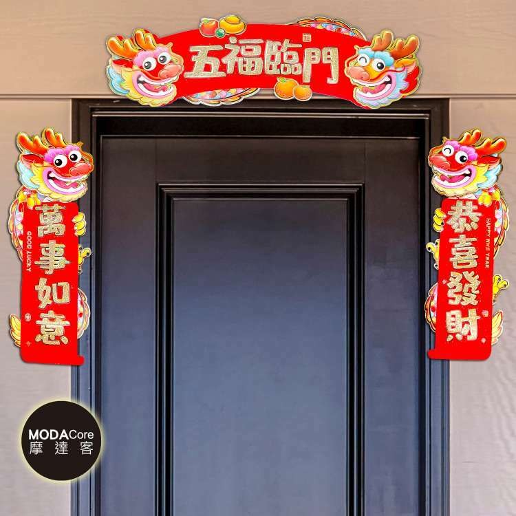 摩達客 春節開運招財 立體大金福字開心龍抱元寶斗方 單片春聯