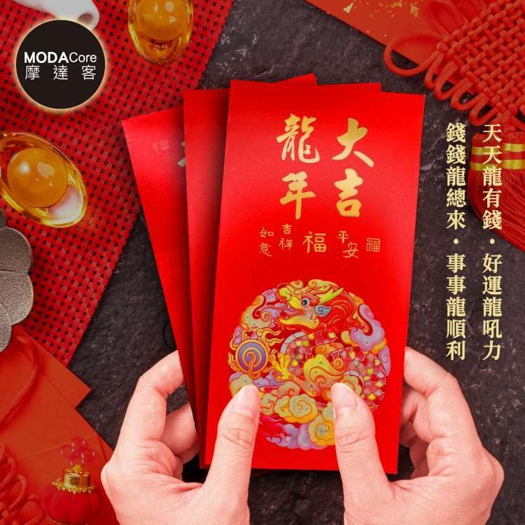 摩達客 春節開運招財紅包袋套組 (炫彩團龍 萬事如意 龍年大吉) 6個