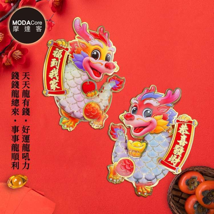 摩達客◉春節開運招財◉揮春寫真龍鱗幻彩毛龍福到我家恭喜發財門聯對聯春聯兩片組