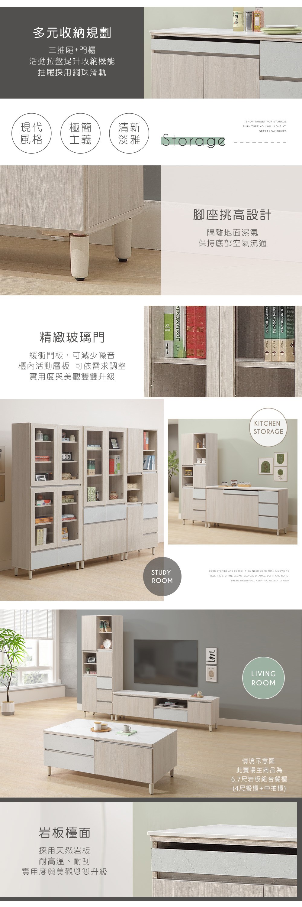 唯熙傢俱-紀薇橡木雙色2.7尺餐櫃