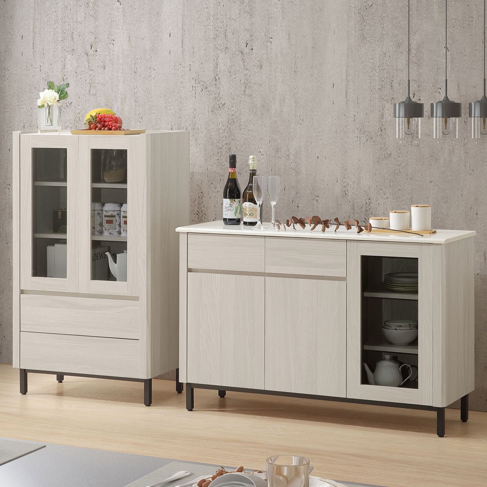 【Homelike】喜家居餐櫃二件組(4尺餐櫃+玻璃櫃)(2348)