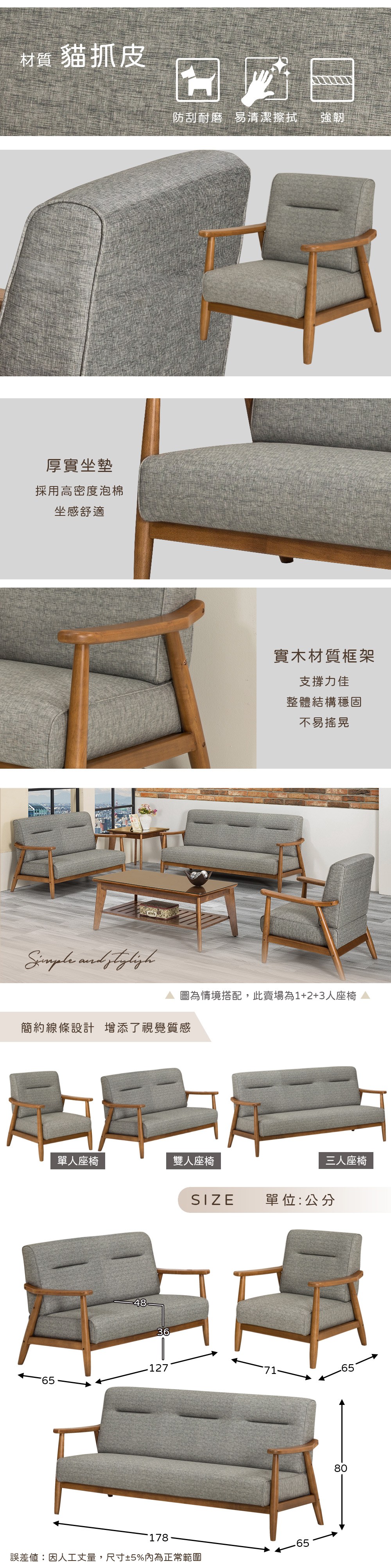 ASSARI-凱特耐磨抑菌四人座貓抓布沙發-鐵腳