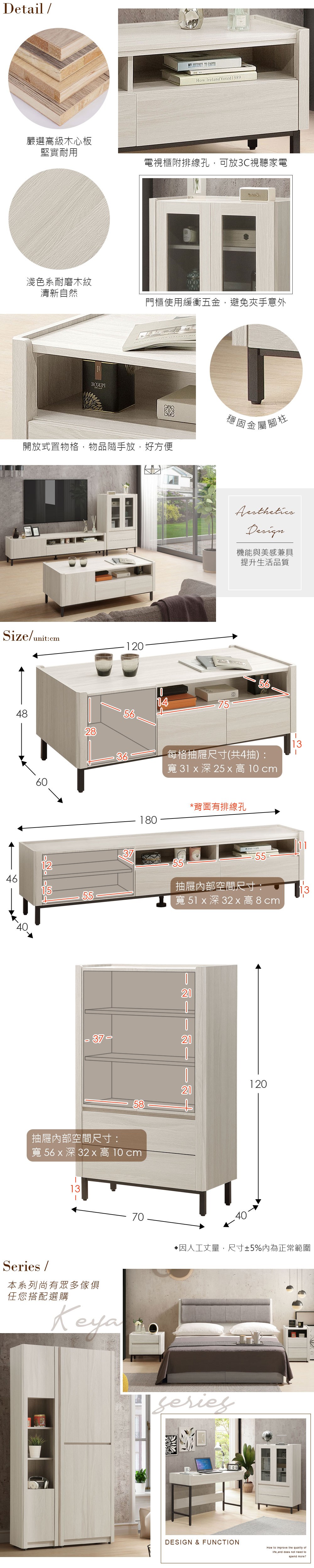 【唯熙傢俱】紀薇橡木雙色5尺電視櫃