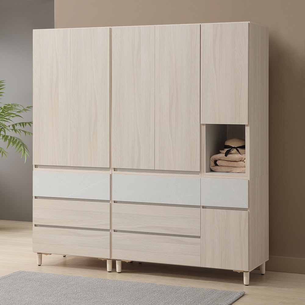 【歐風別館】秋楓5*8尺白楓木色滑門四抽加高衣櫃【棉被櫃】【基隆至台中免運費】