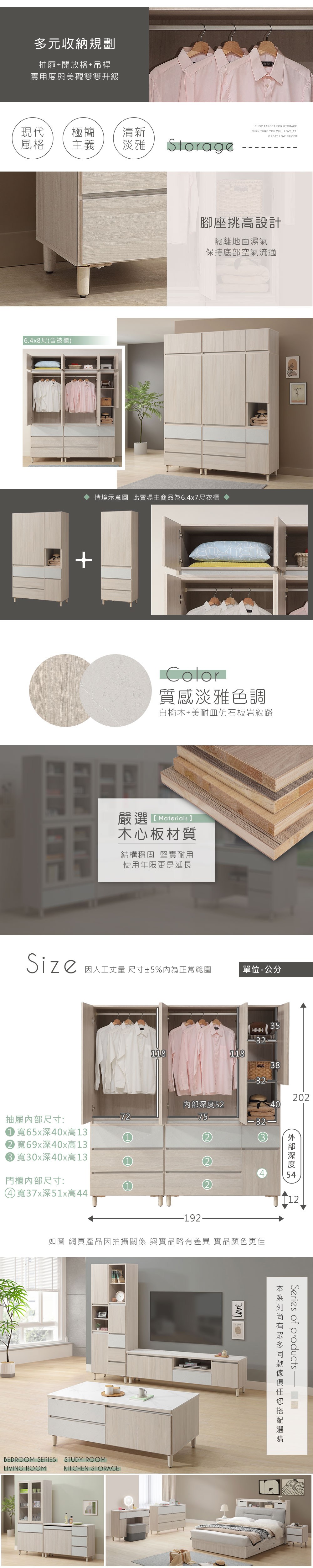 IDEA MIT凡賽4X6尺木質收納抽屜滑門衣櫃/衣櫥(3色任選)