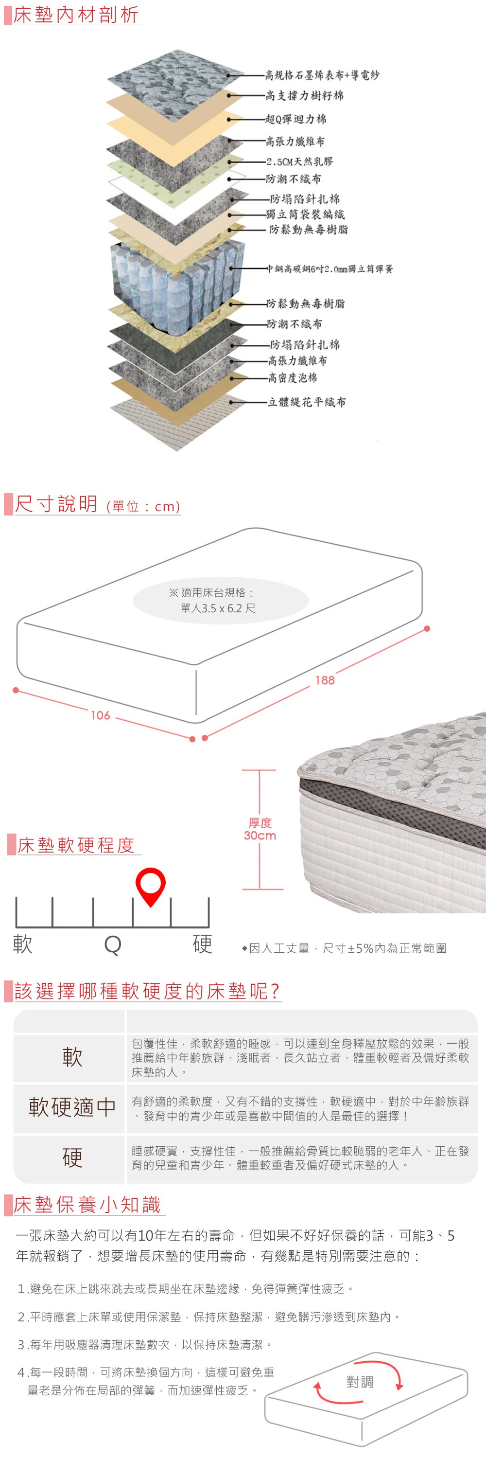 [愛傢舒眠館]寶貝情人-恆溫智能涼感紗三線乳膠獨立筒床墊