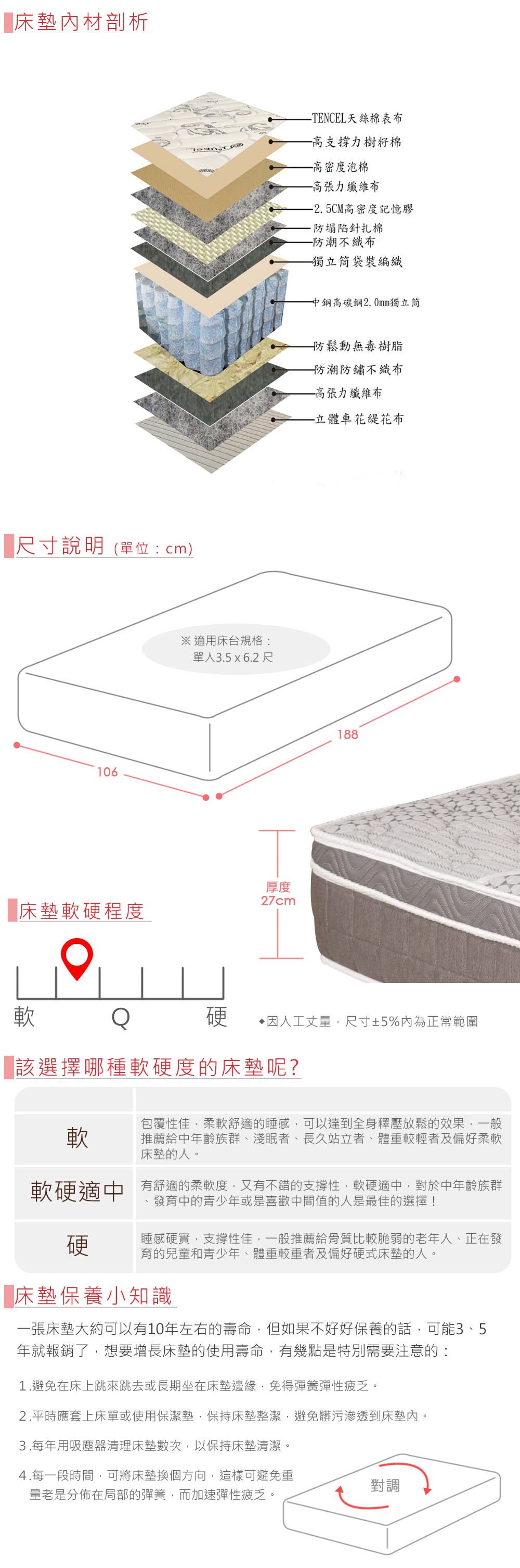 ASSARI-石墨烯雙彈簧高支撐三線獨立筒床墊-單人3尺單人3尺