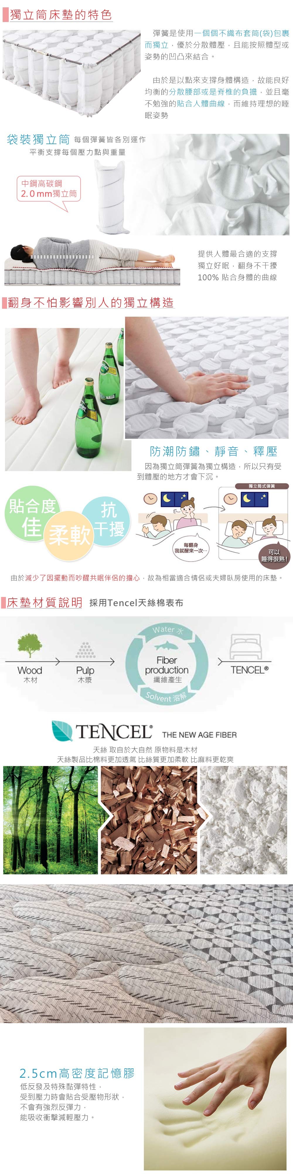 《新之森林》天絲乳膠抗菌防蹣13CM低獨立筒墊-單人加大3.5尺