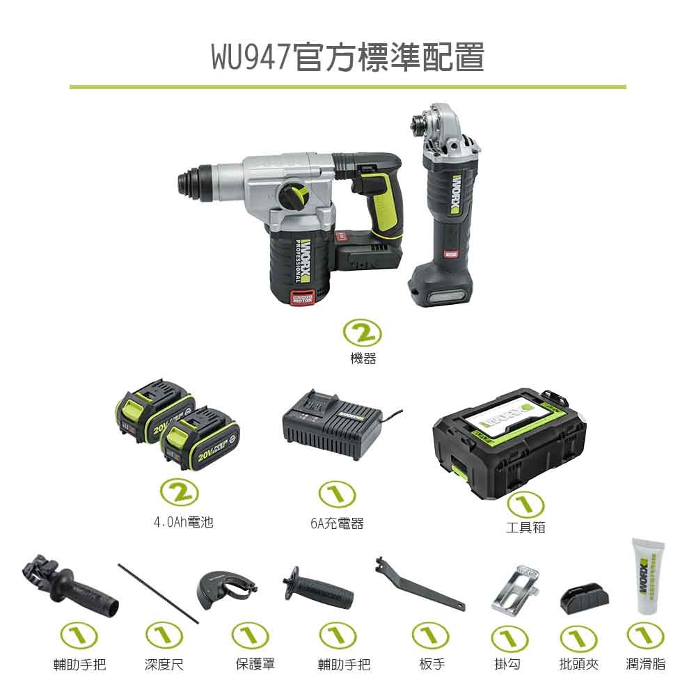 WORX 20V 24mm 無刷槌鑽4.0ah*2 WU388.5