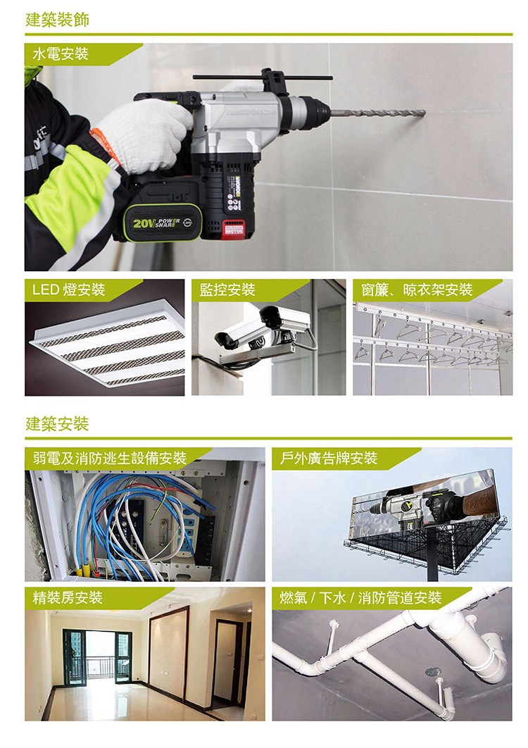 WORX 20V 26mm無刷電錘6.0ah*2 WU399