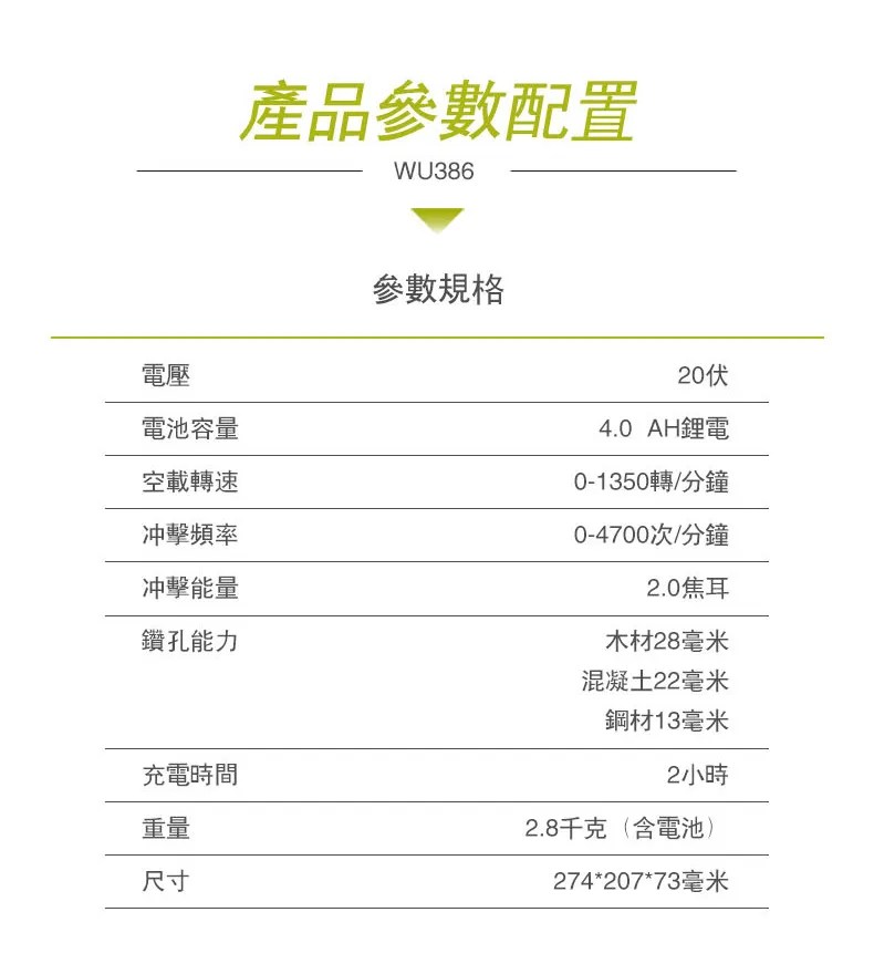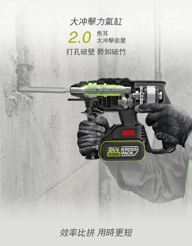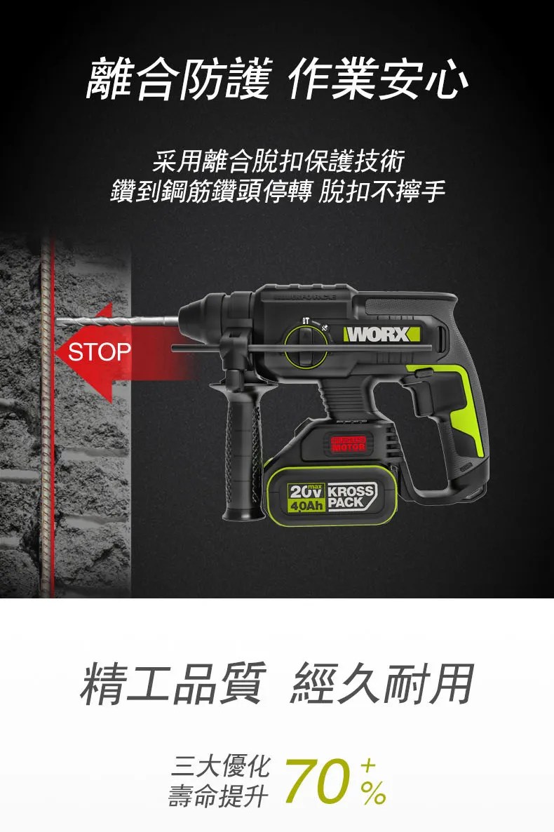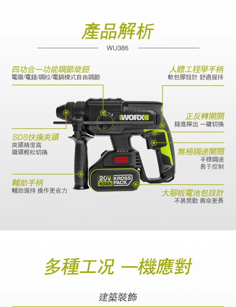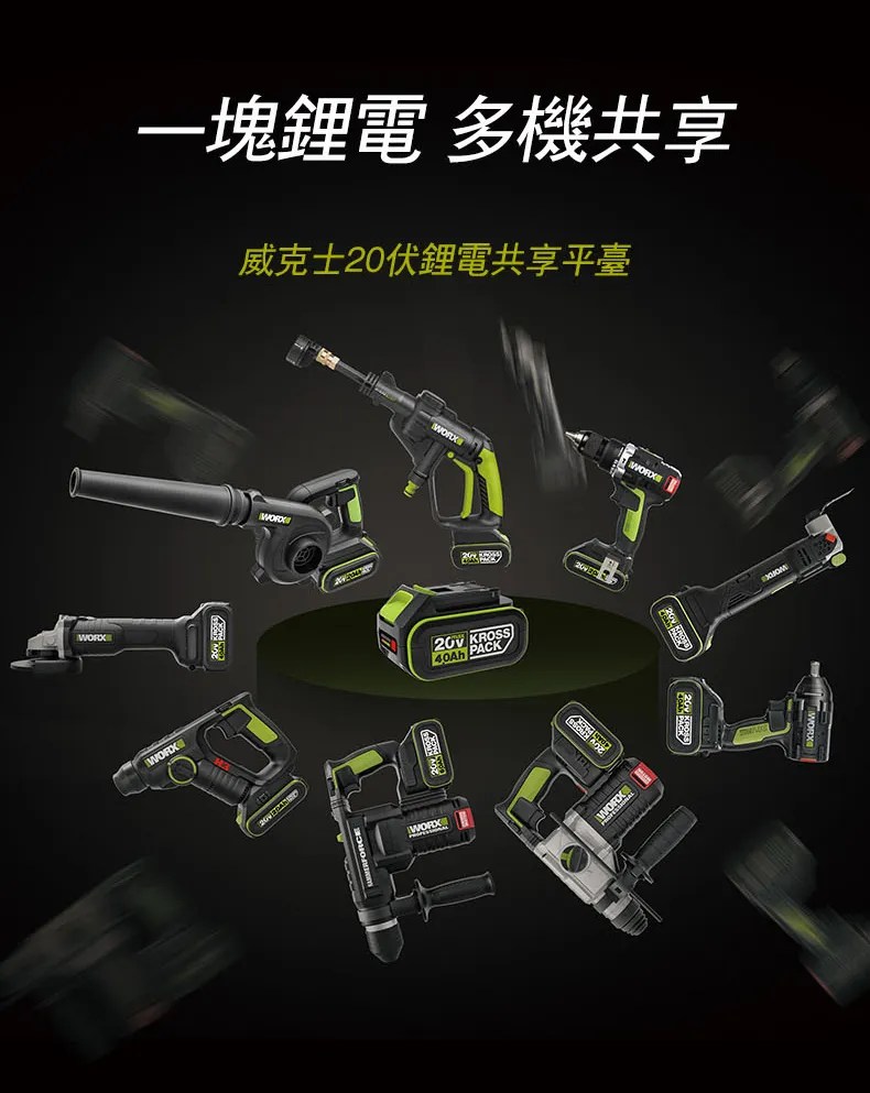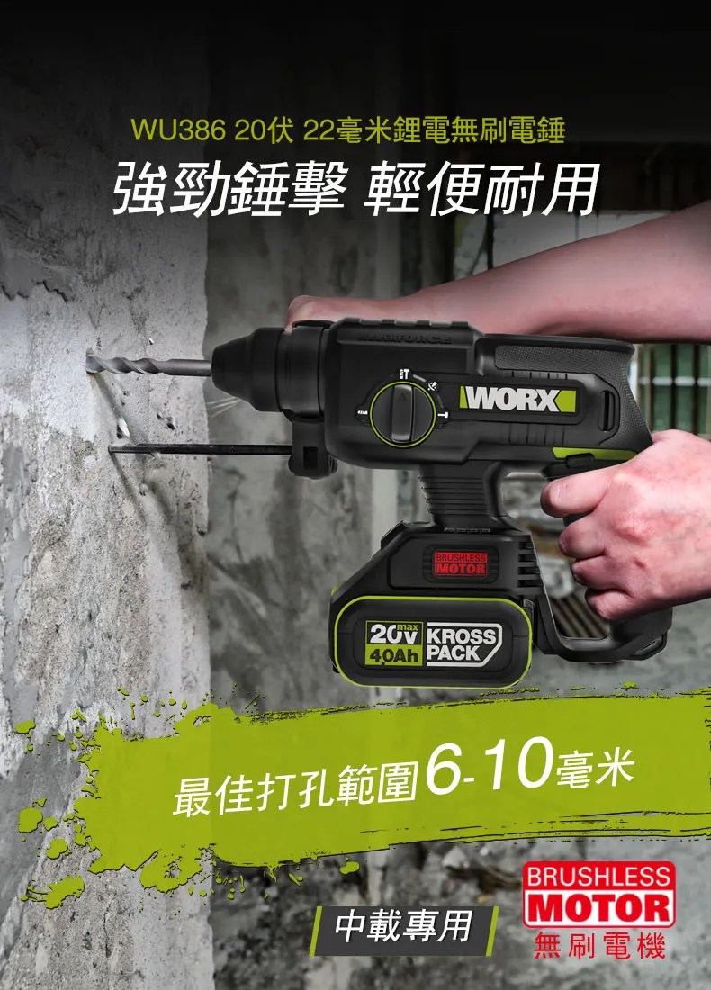 WORX 20V 26mm無刷電錘6.0ah*2 WU399