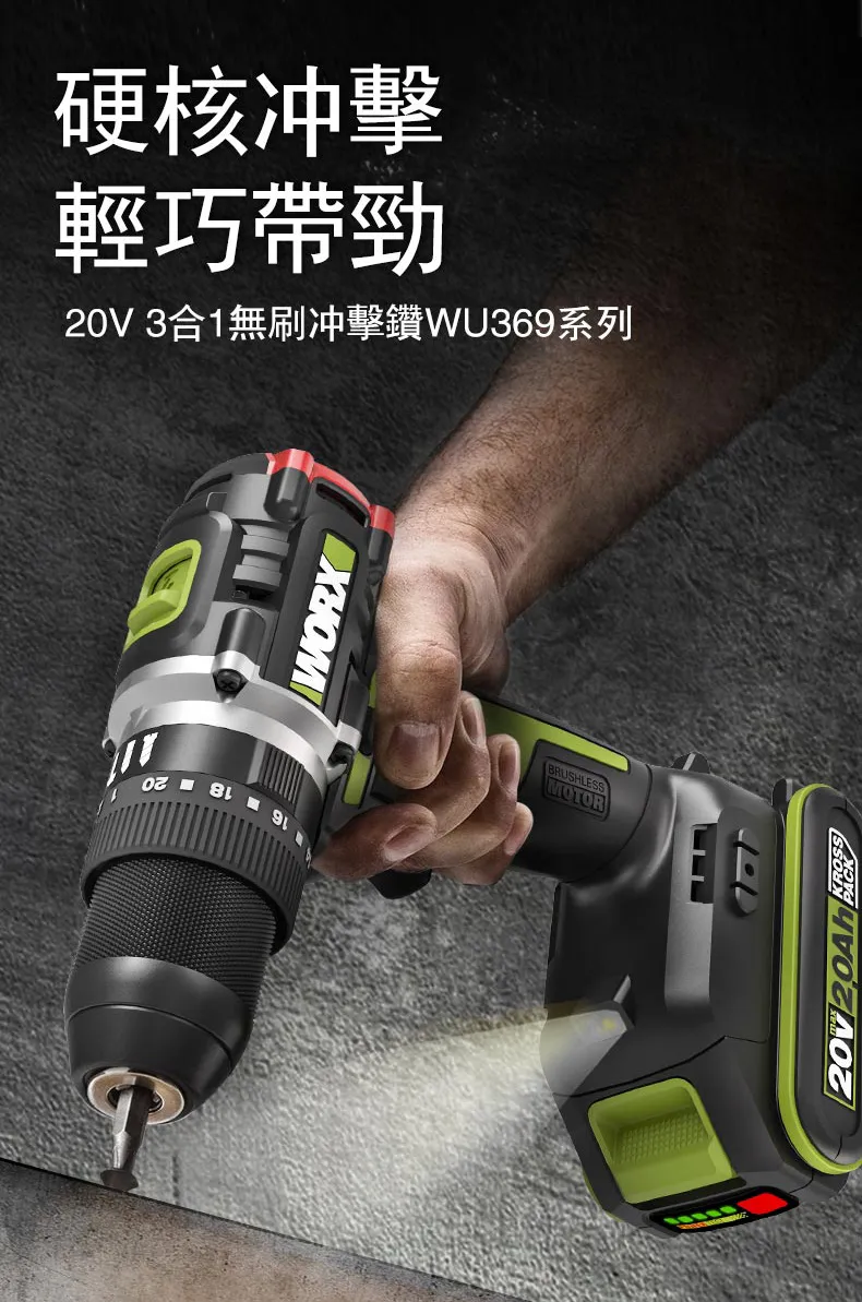 【本月特價】WORX 威克士 WU373 無刷震動電鑽 95Nm 夾頭 G-tech防扭手設計 螢宇五金