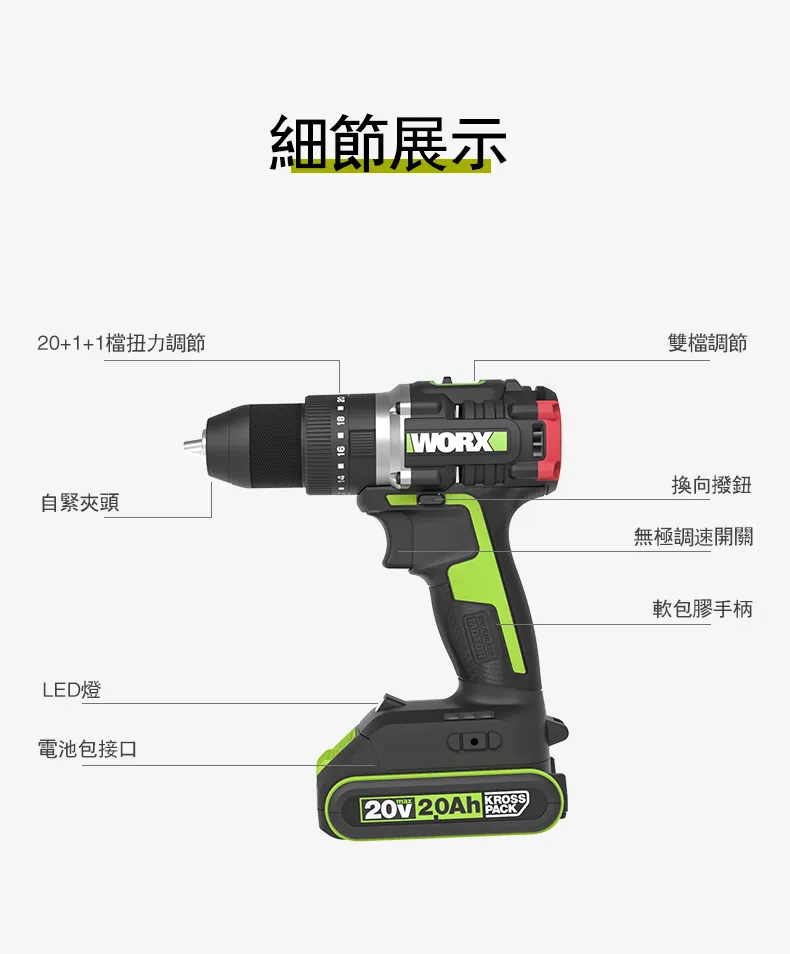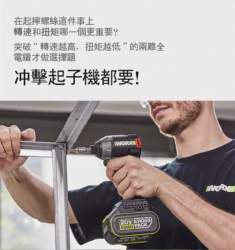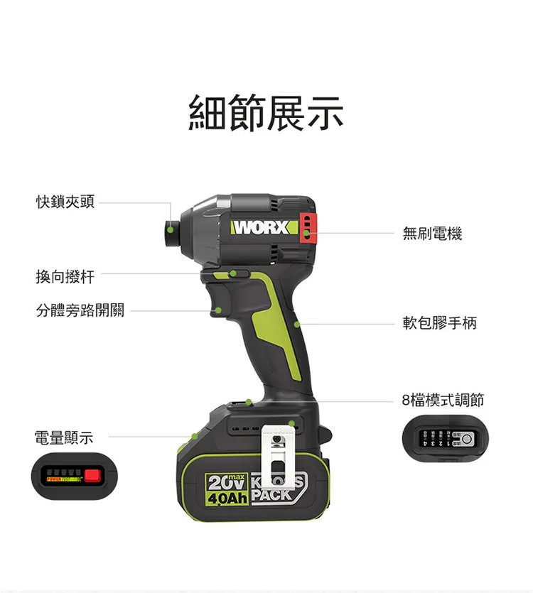 WORX 威克士 20V無刷鋰電8段速衝擊起子機 4.0Ah雙電池 WU291D