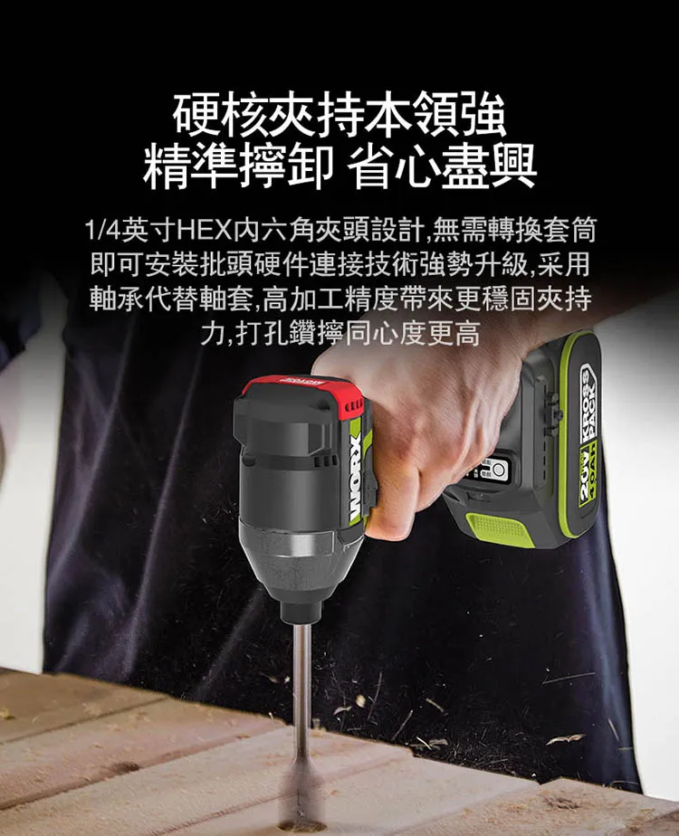WORX 無刷衝擊起子機 230牛頓米 3速調整 雙電池 WU290D