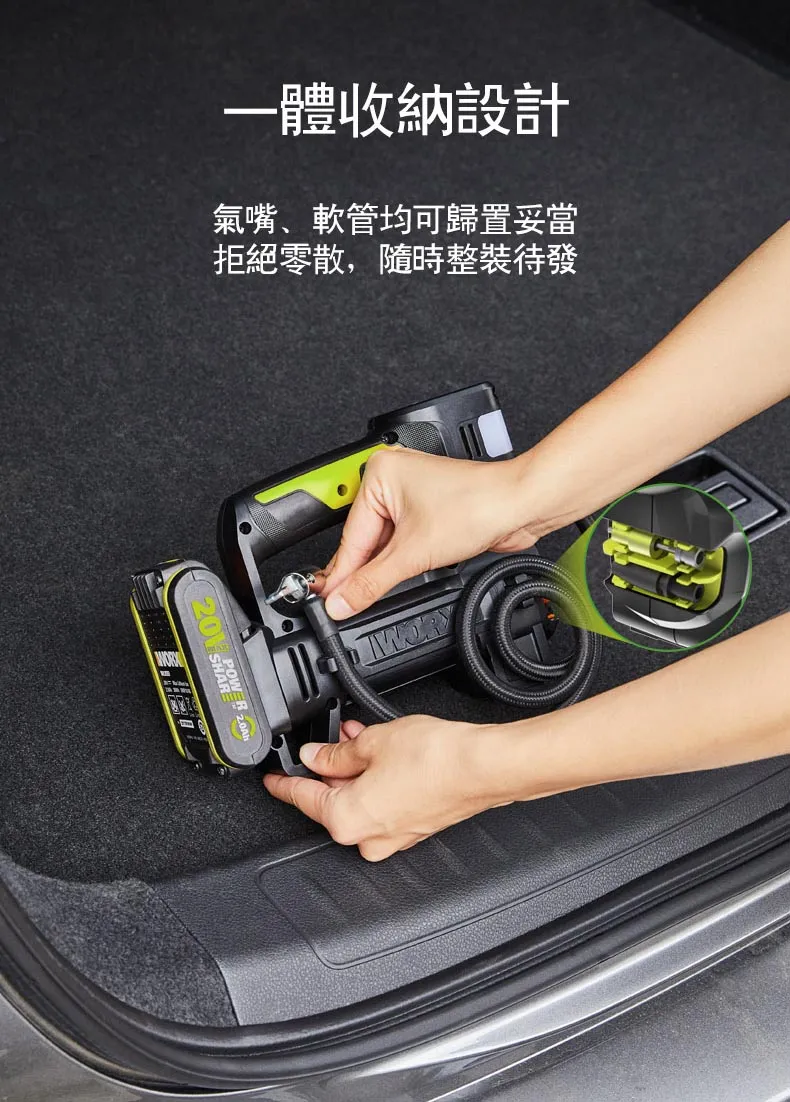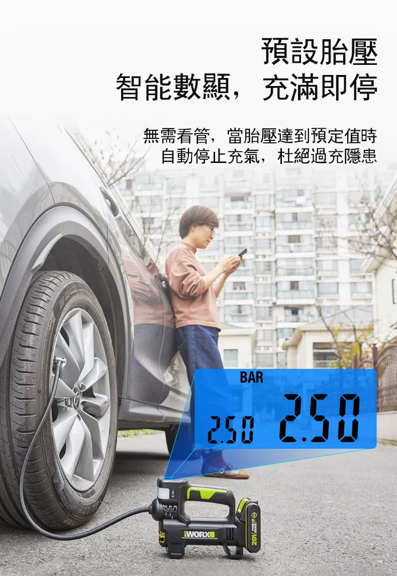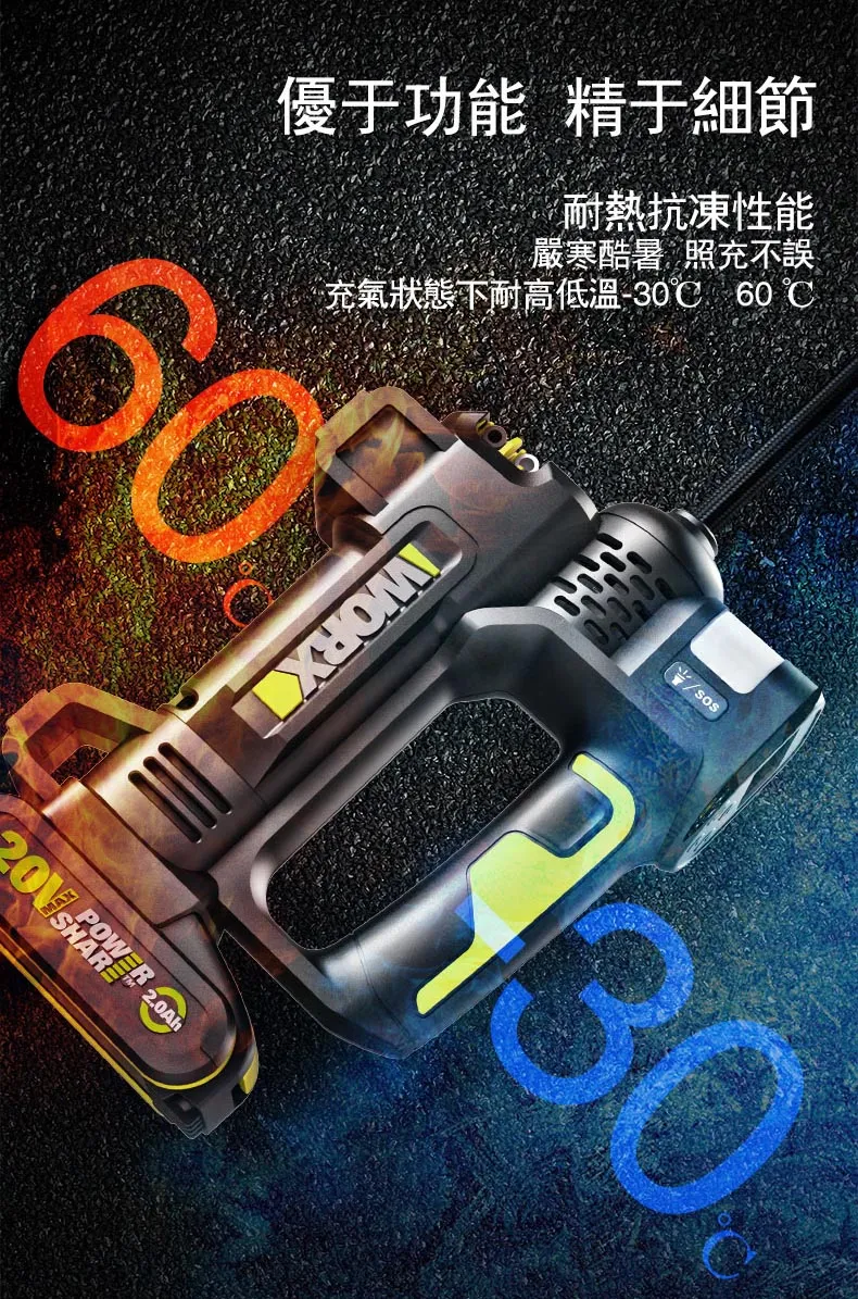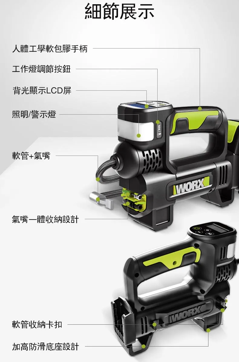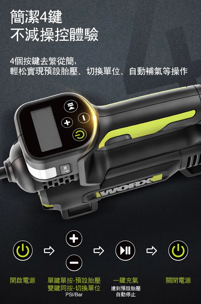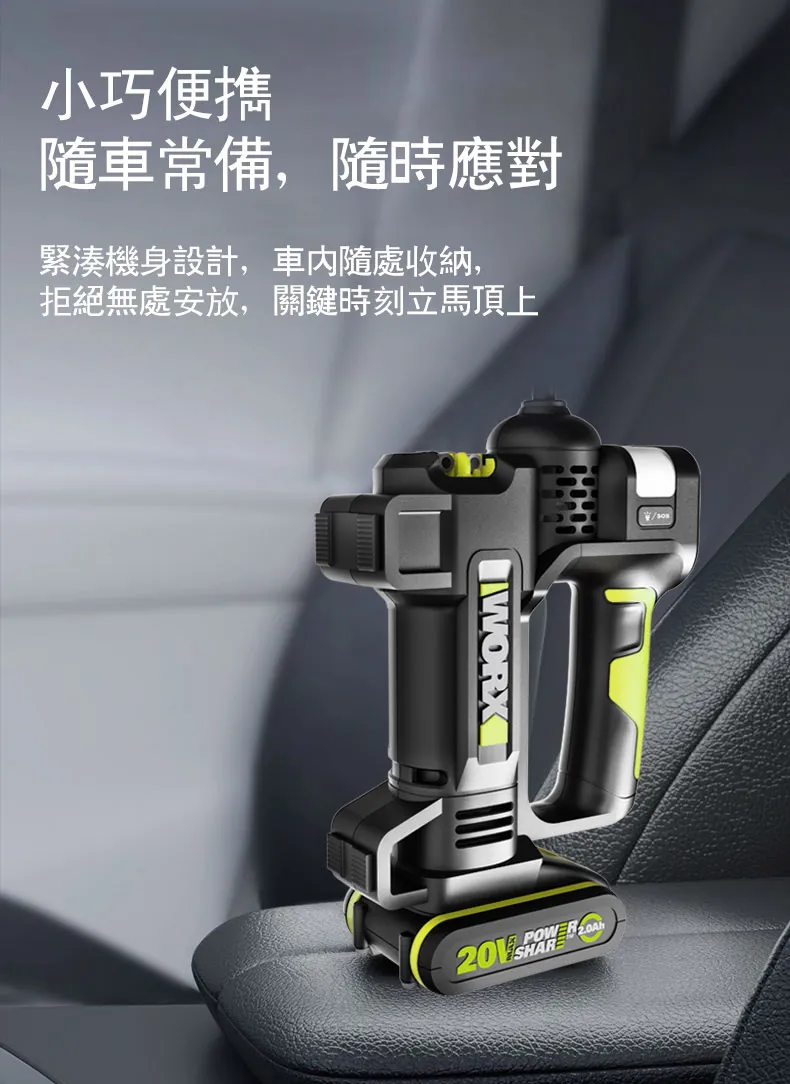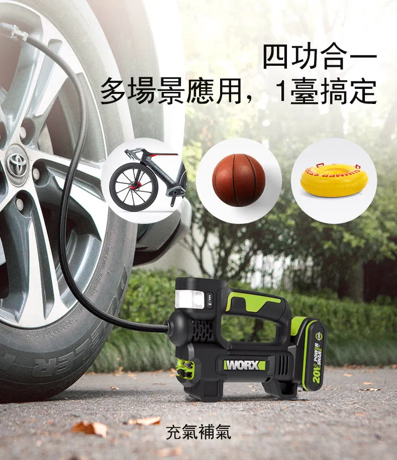 WORX 威克士 台灣公司貨 20V 雙缸高壓打氣機 高壓打氣泵 空機 WU092.9 228 x 167 x 71mm 920g 1台
