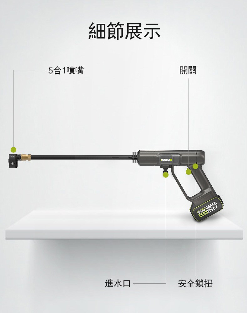 WORX 20V 鋰電高壓清洗機 2.0Ah WU623.1 (2.0ah*1)