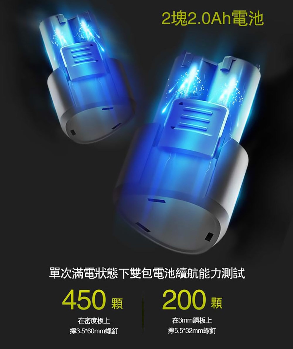 PANRICO 百利世 12V雙鋰電無碳刷衝擊起子機 2.0Ah鋰電池 160Nm大扭力 本體 + 2顆電池以上 1個