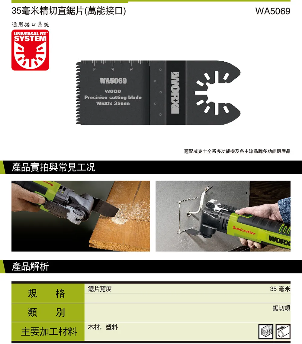 WORX 威克士 台灣公司貨 標準直鋸片 萬能介面 WA5067 35mm 1個