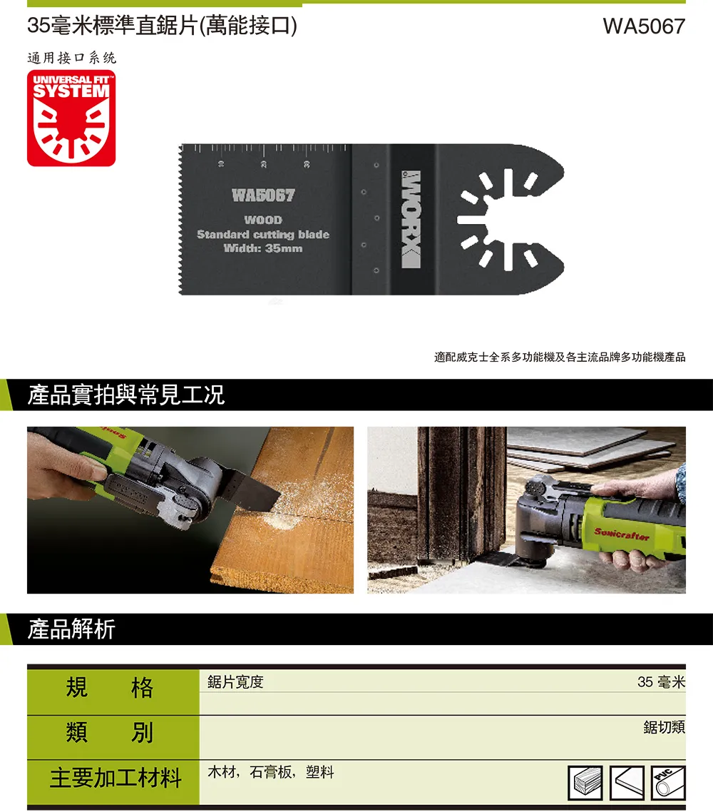 WORX 威克士 台灣公司貨 標準直鋸片 萬能介面 WA5067 35mm 1個