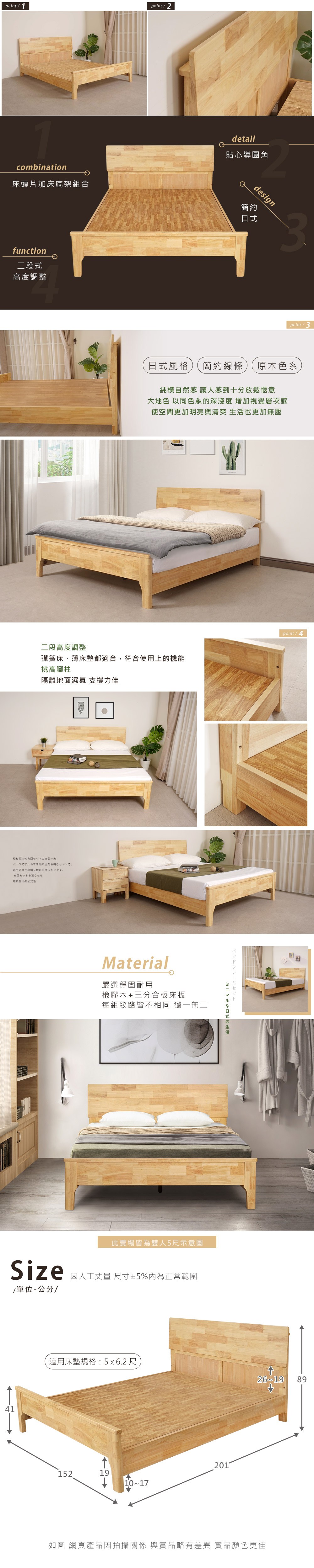 Homelike 喜家居雙人加大6尺日式床台組(兩色可選)(1909)梧桐木