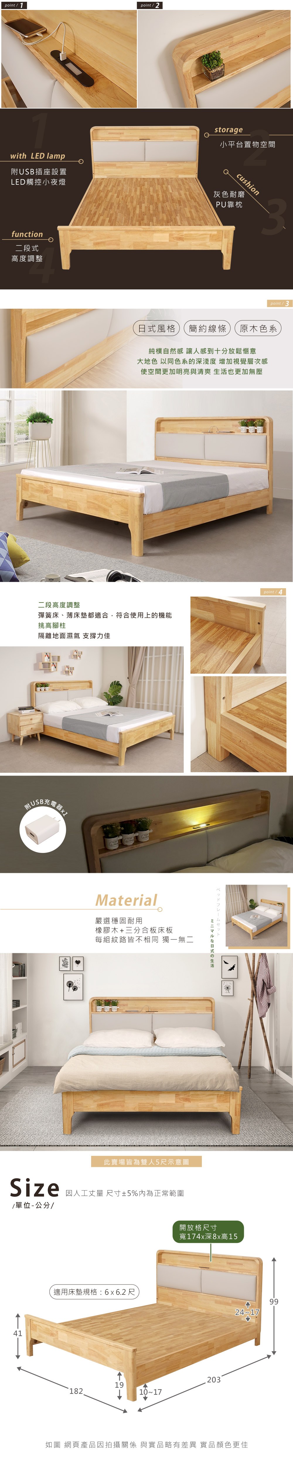 傢俱工場-吉米 MIT木心板床組 (插座床箱+床底) - 雙大6尺古橡