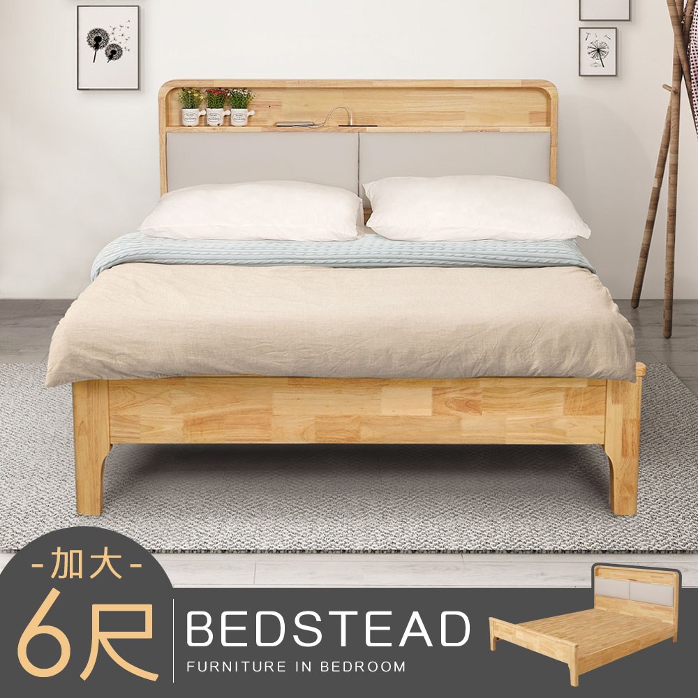 Homelike 喜家居雙人加大6尺懸浮感應燈實木床架組(附床板)(2421)