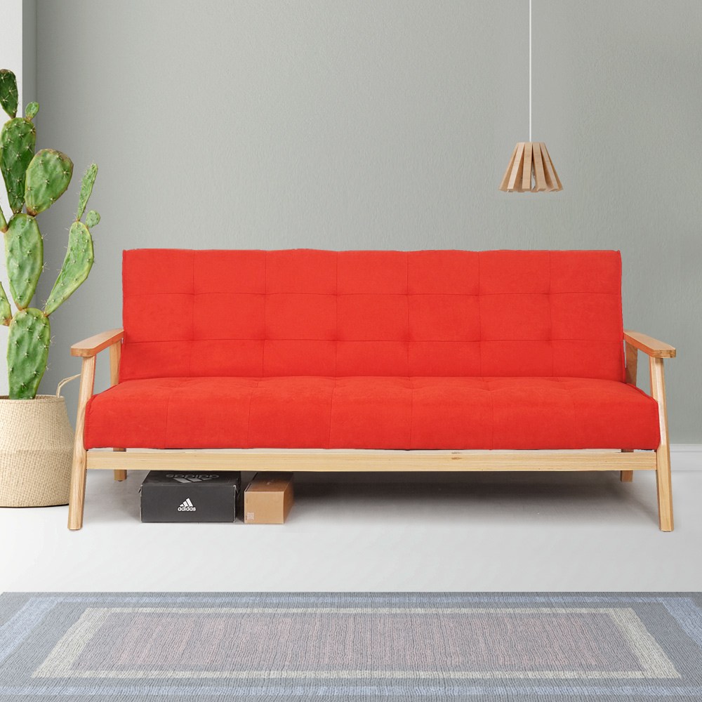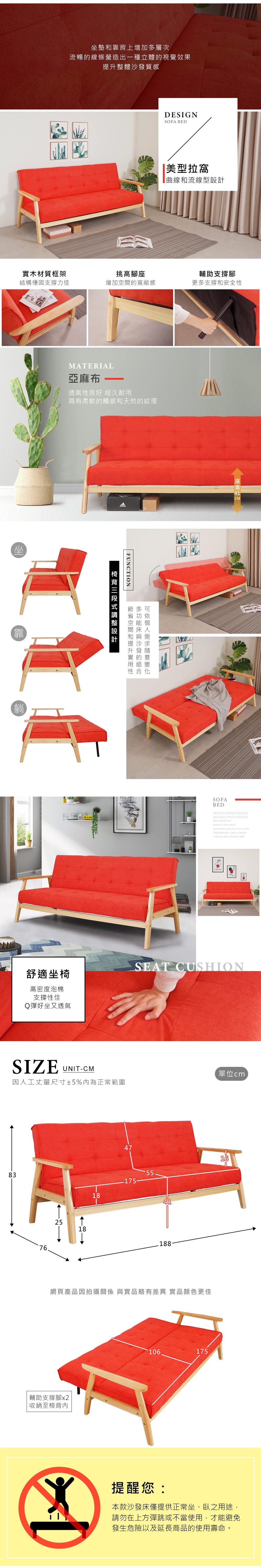 Homelike 喜家居亞麻布沙發床-赤朱紅(2353)