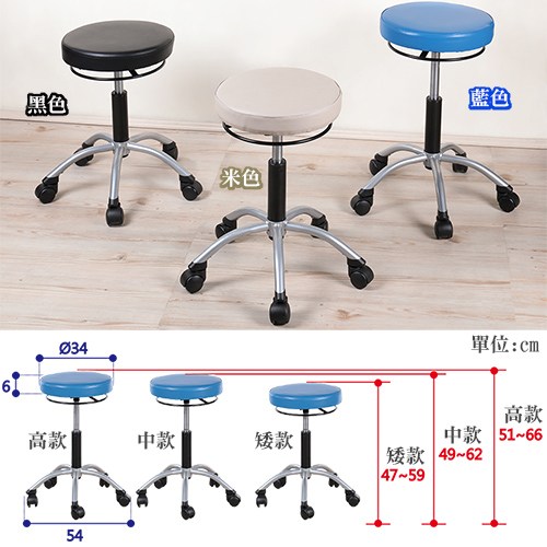 依個人身高與使用習慣以及使用目的,共有 高、中、矮三種高度不同的款式規格可以選擇,宛如量身訂做,無論美容院或高科技廠的生產線適合的矮款或是適合吧檯桌使用的高款,小孩與成人皆可使用,台灣生產安全可靠!