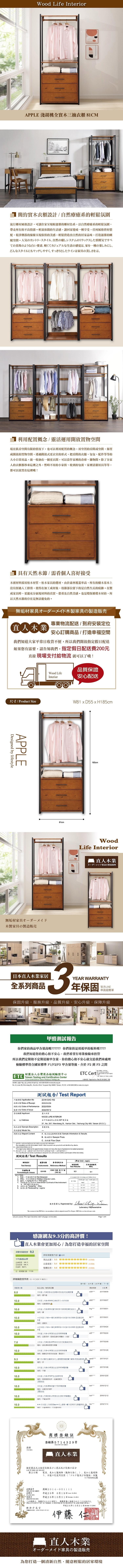 直人木業-APPLE淺胡桃全實木工業風81公分三抽衣櫃