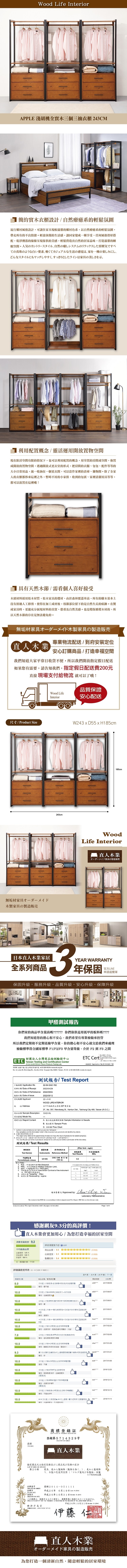 HOPMA》美背復古三門二抽二格衣櫃 台灣製造 衣櫥 抽屜櫃 衣物收納櫃-拼版柚木