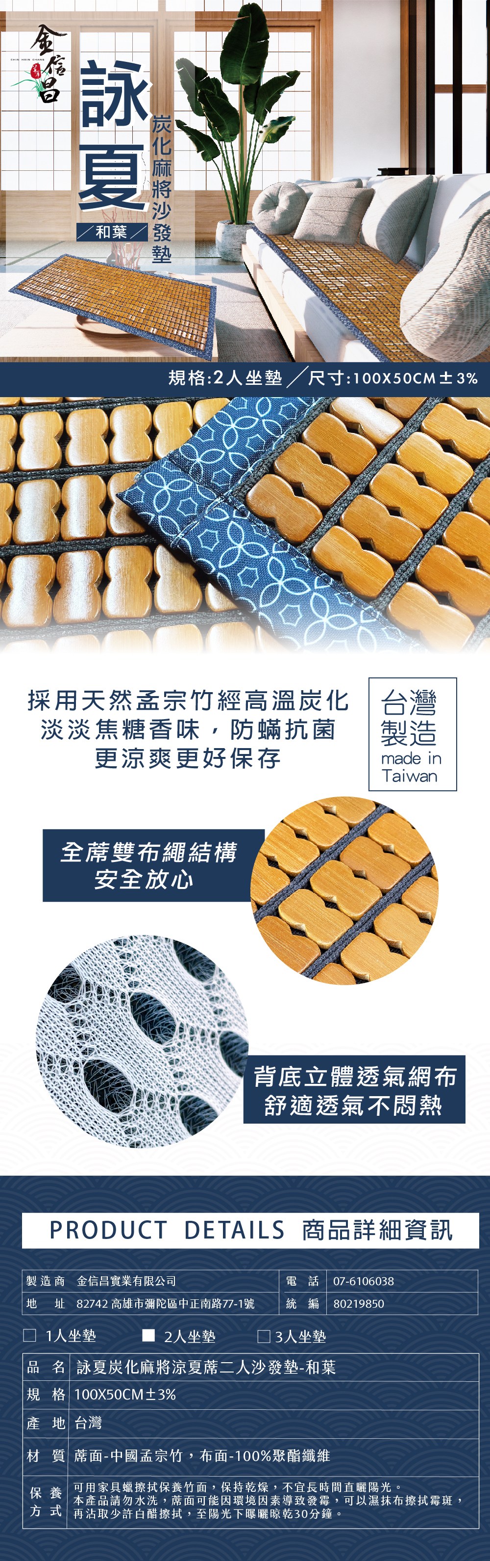 詠夏炭化麻將蓆 一人沙發墊-和葉