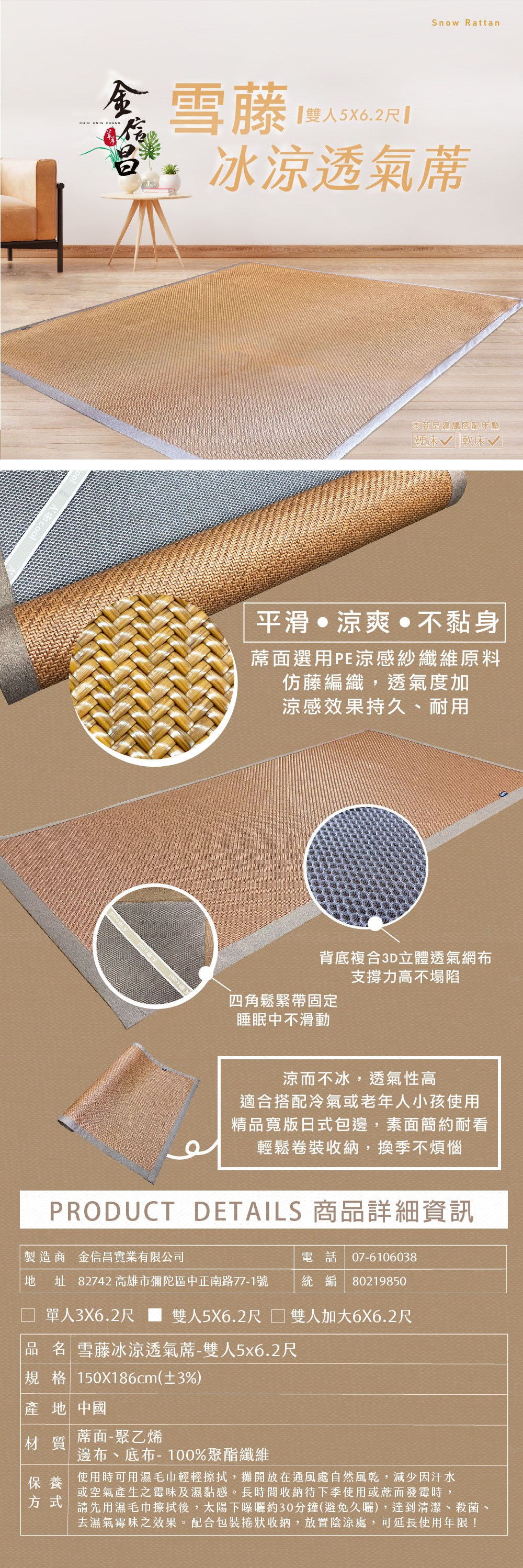 雪藤冰涼透氣蓆 雙人