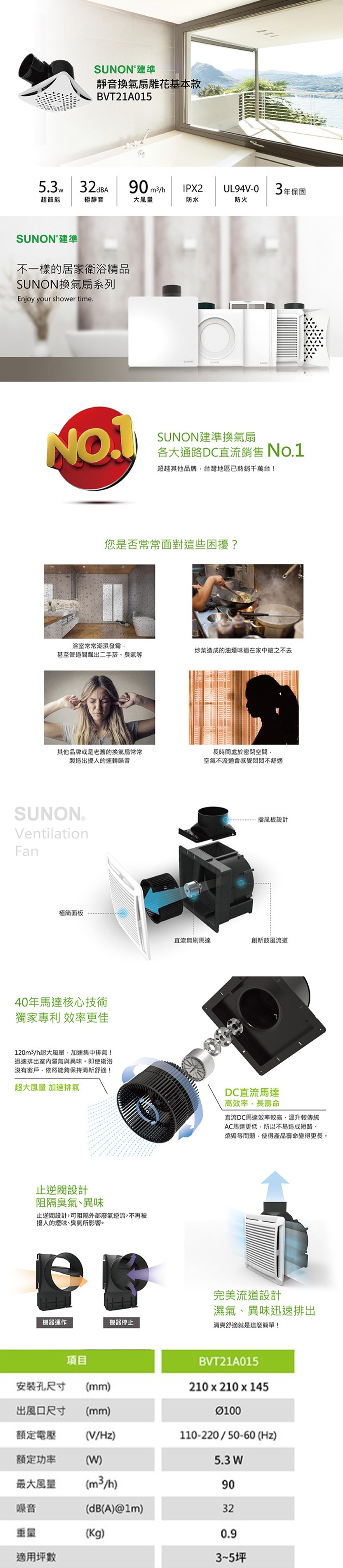 【SUNON建準】DC直流雕花變頻節能換氣扇 BVT21A015 節能省電 三年保固