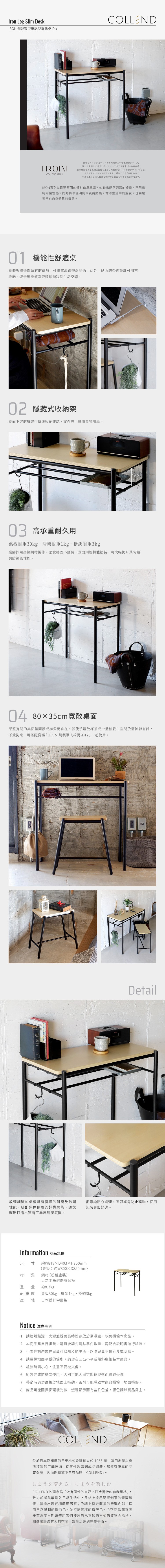 【日本COLLEND】IRON 鋼製窄型筆記型電腦桌-DIY