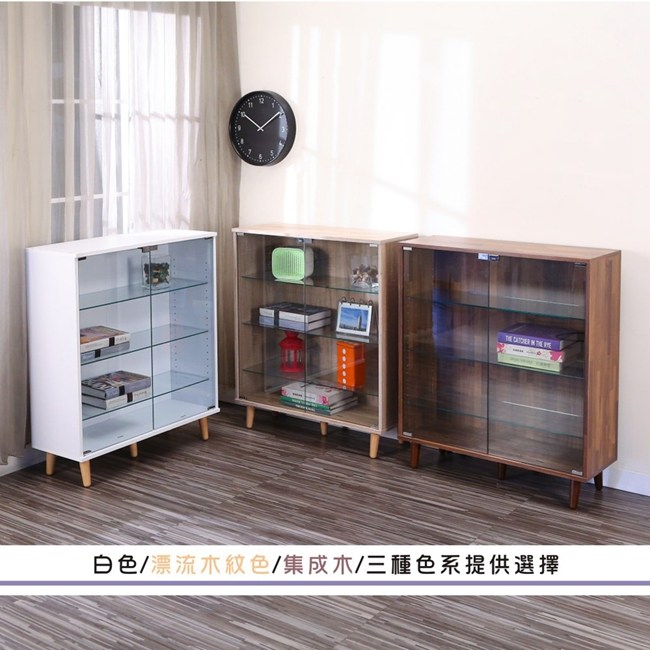 讓公仔們有個家吧!放到展示櫃裡擺放觀賞,朋友來時可以一同分享收藏,同時也可以裝飾家中的角落,全高96cm讓您完美呈現收藏品,3片強化玻璃活動層版可自由調整讓擺放不受限,按壓式玻璃門採用5mm強化玻璃,既安全又美觀,還不用擔心灰塵髒汙附著。讓小家庭可以輕鬆收納又不佔空間,此外整體板材使用低甲醛E1健康板材,讓您用的安心。不只可以放玩具公仔模型也可以當書櫃用或放小朋友的娃娃,如此多功能的櫃子,是家中不可或缺的好物。