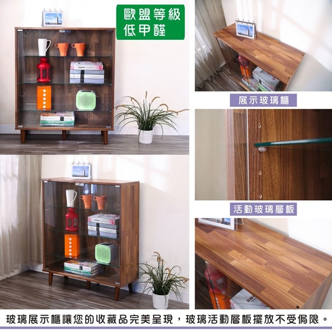 BuyJM 低甲醛寬80cm四層強化玻璃實木腳展示櫃集成木色