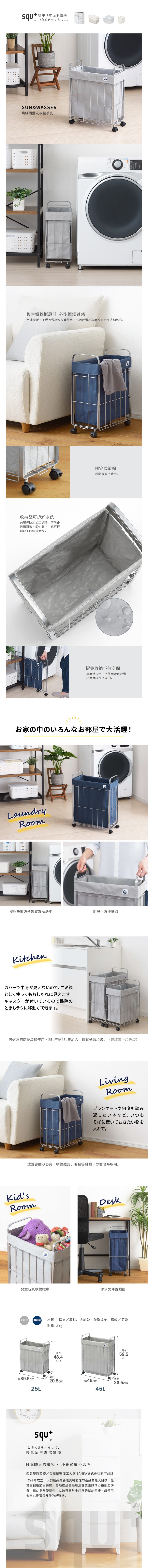 【日本squ+】SUN&WASSER鐵線摺疊洗衣籃/置物籃(附輪)-45L-多色可選-北歐灰