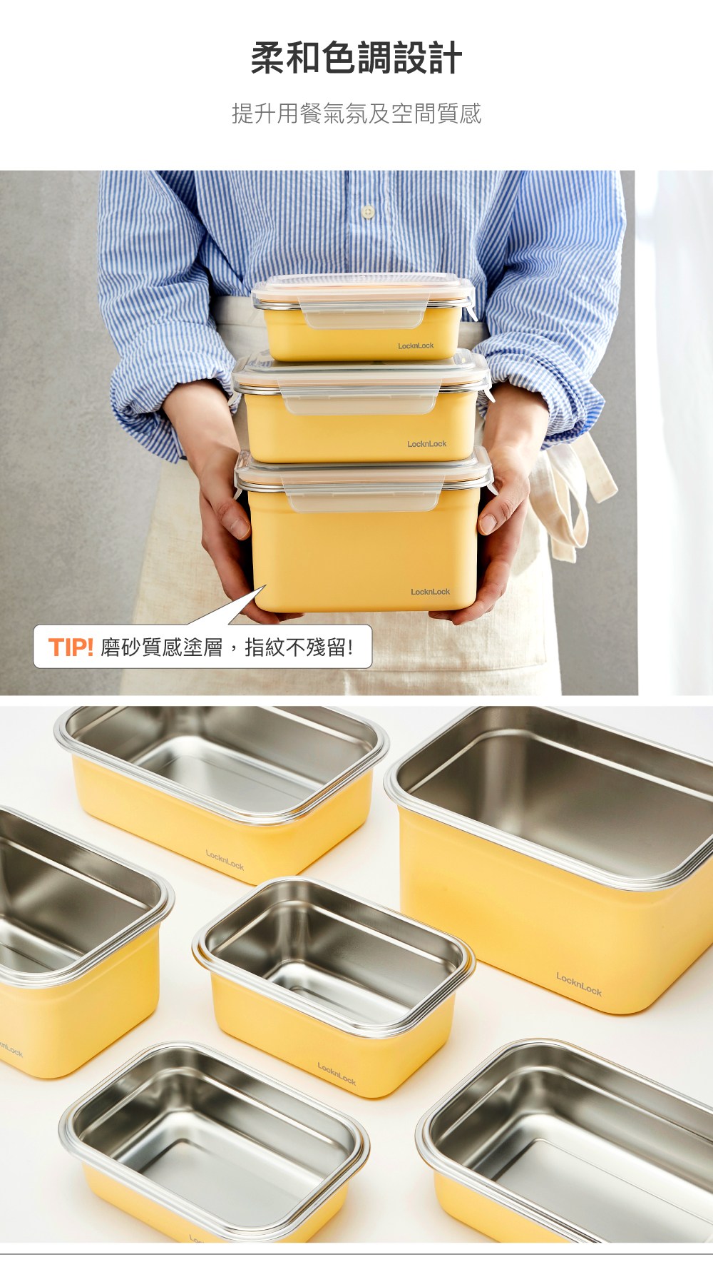 樂扣樂扣 可微波輕漾粉彩不鏽鋼保鮮盒-黃色 1.2L