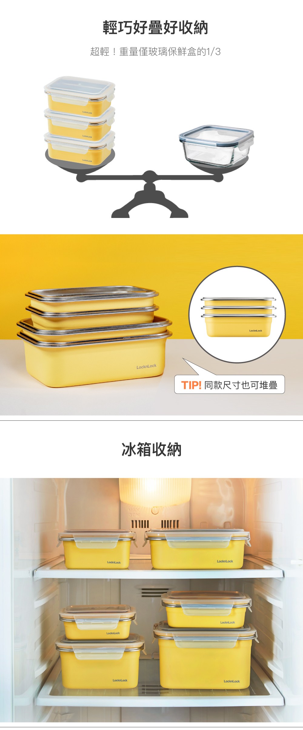 樂扣樂扣 可微波輕漾粉彩不鏽鋼保鮮盒(600ML)-黃