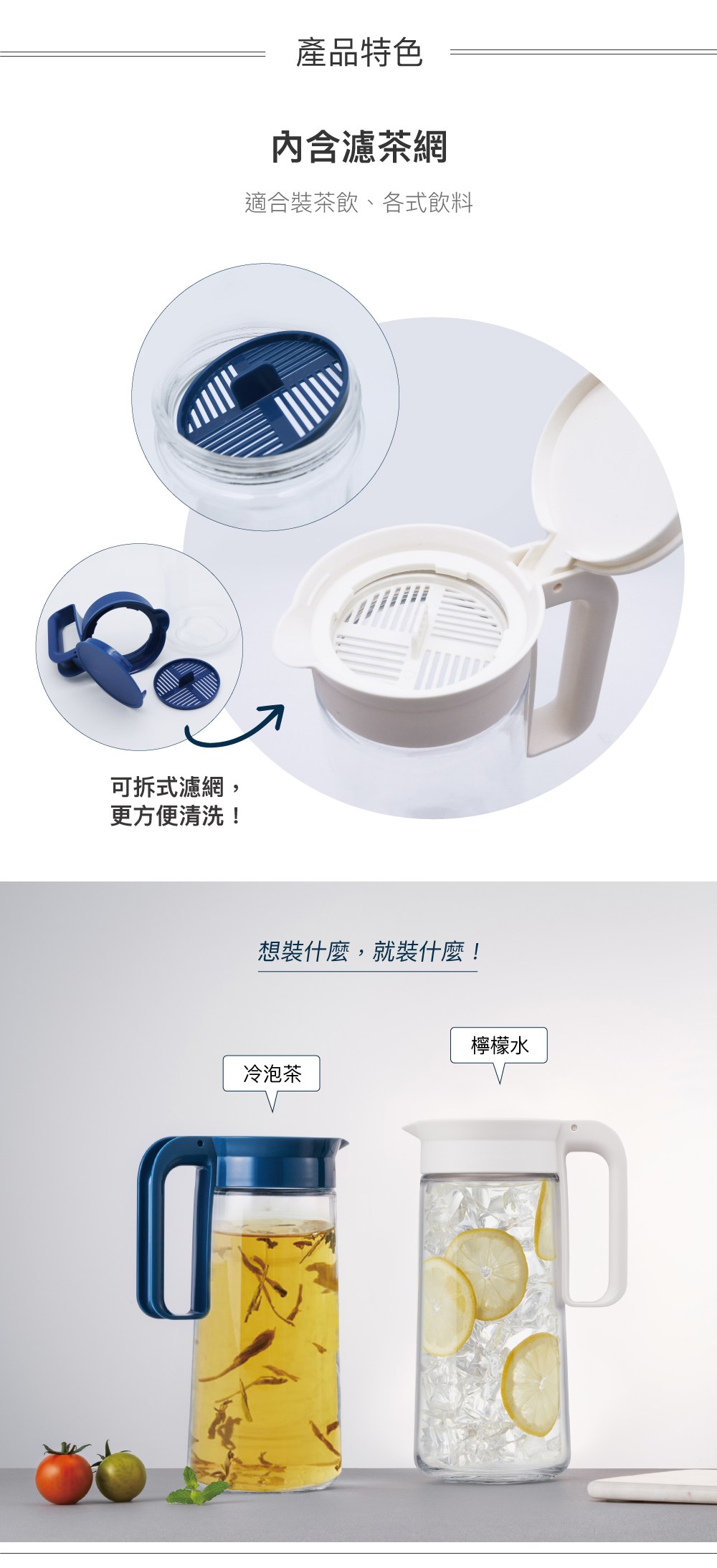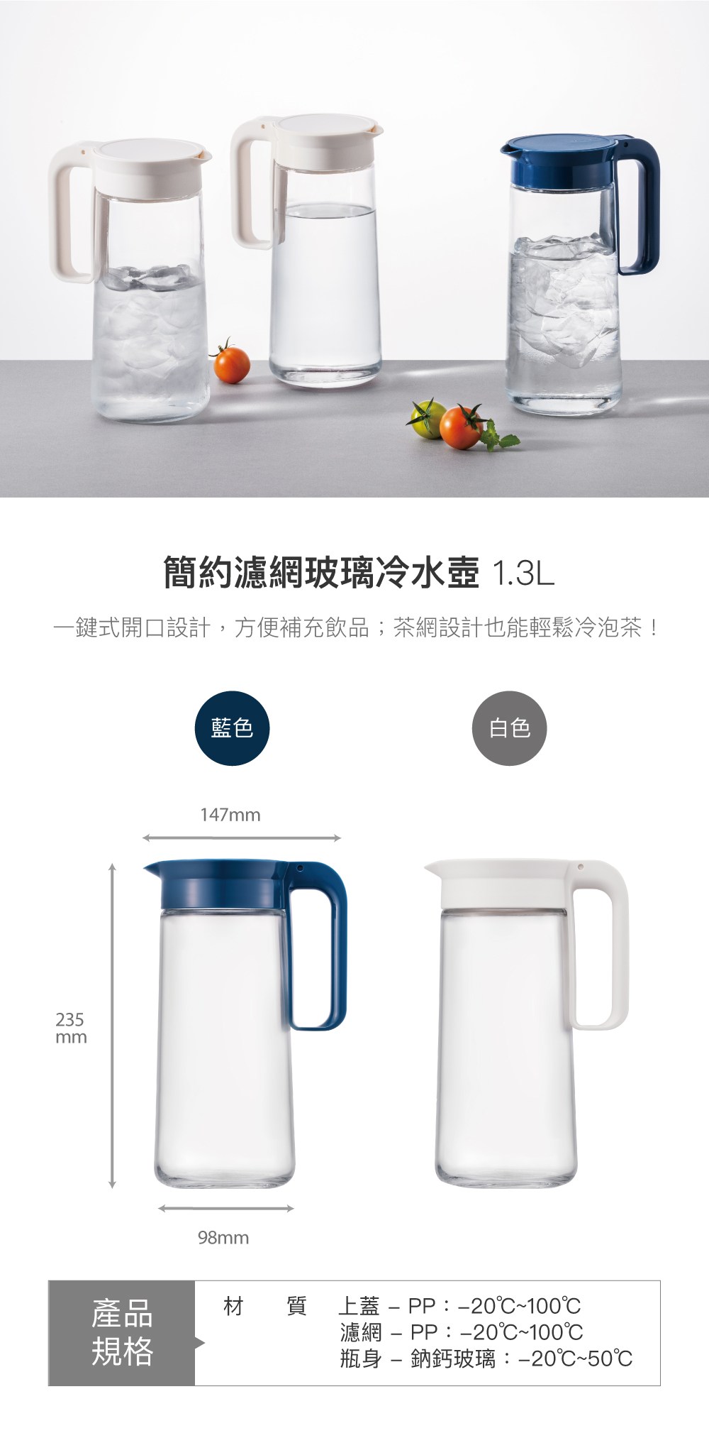 樂扣樂扣簡約濾網玻璃冷水壺1.3L-白