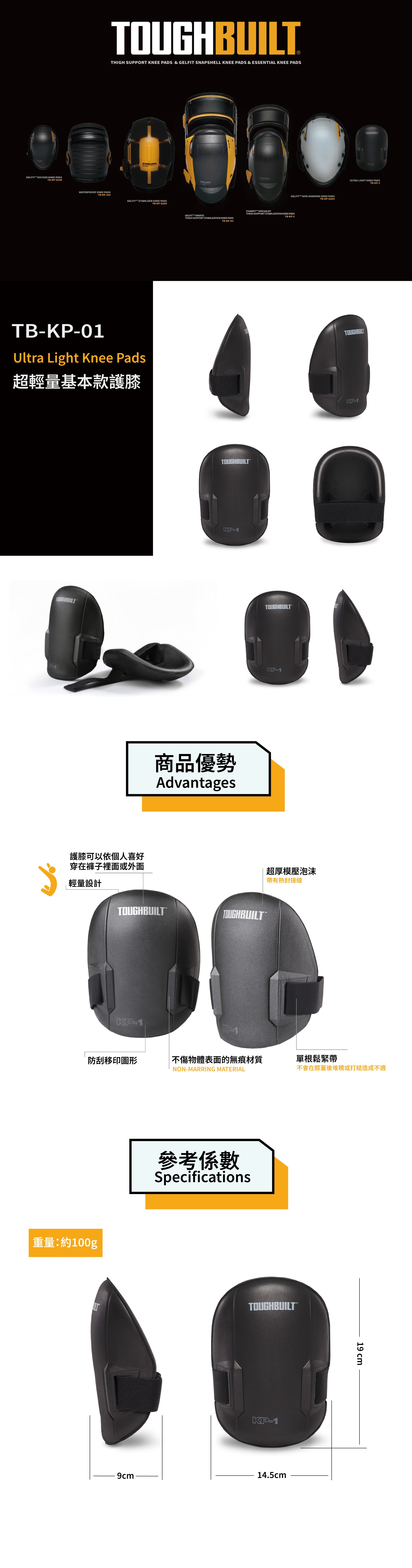 Toughbuilt 超輕量基本款護膝 TB-KP-1