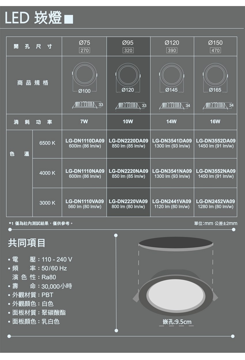 Panasonic LED 嵌燈 3000K LG-DN2220VA09 直徑120mm x 9.5cm 黃光 1個