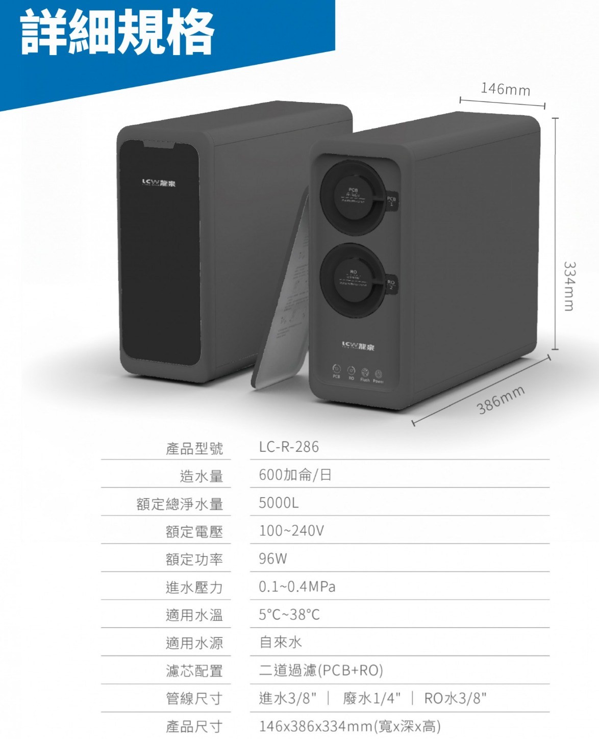 LCW龍泉LC-R-286 廚下型直輸RO淨水器