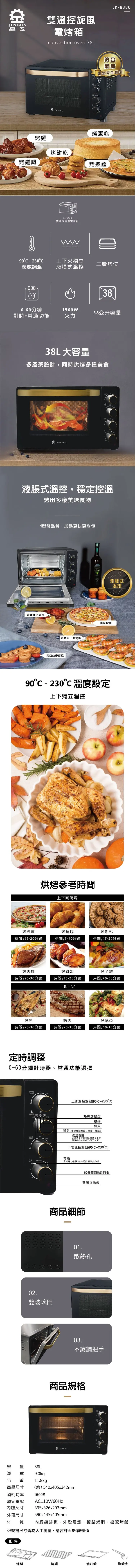 晶工 38L雙溫控旋風電烤箱 JK-8380