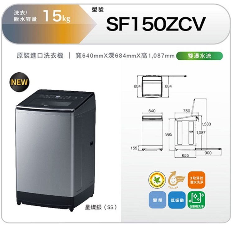 加碼送【HITACHI日立】15KG直立式溫水變頻洗衣機SF150ZCV-SS