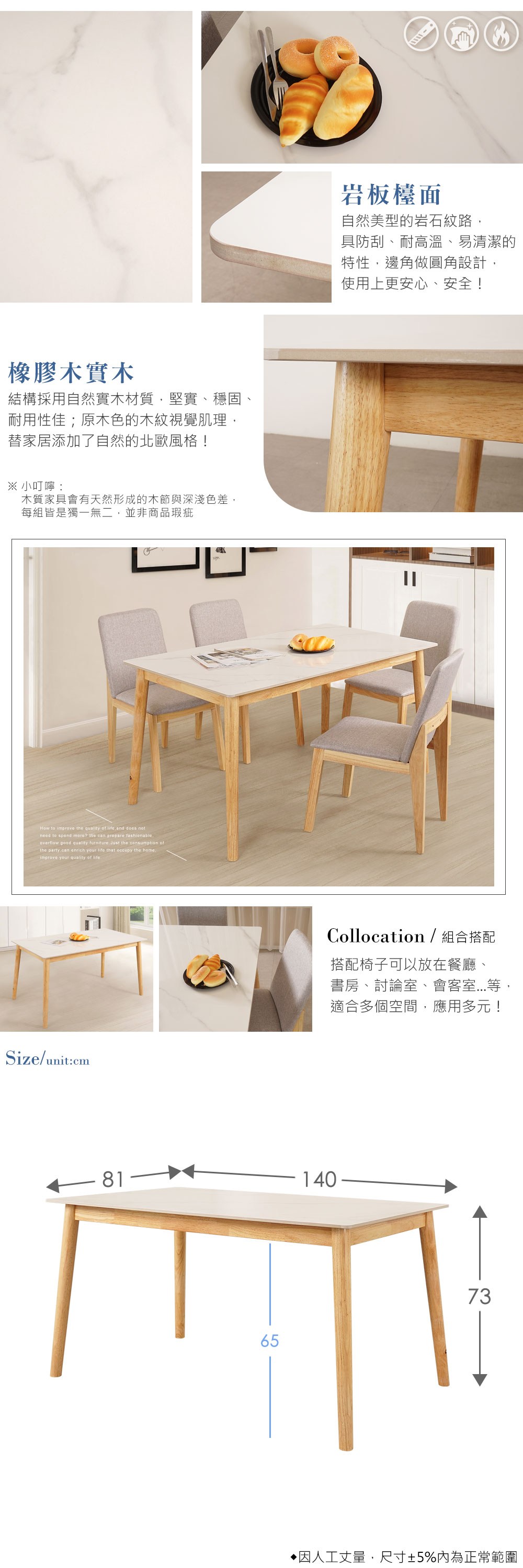 點我下載Homelike 喜家居140cm岩板實木餐桌-原木色(2363)
