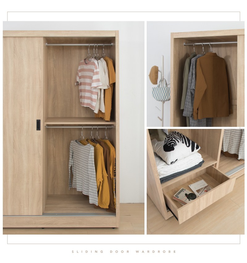 【本木】夕日紅 日式簡約雪松拉門衣櫃(4x6尺)B款-三門四抽