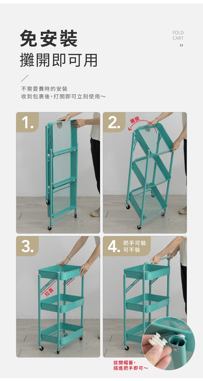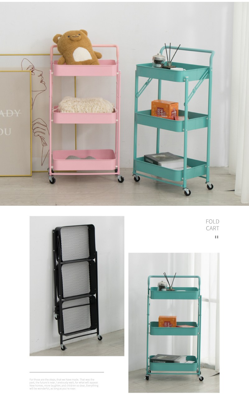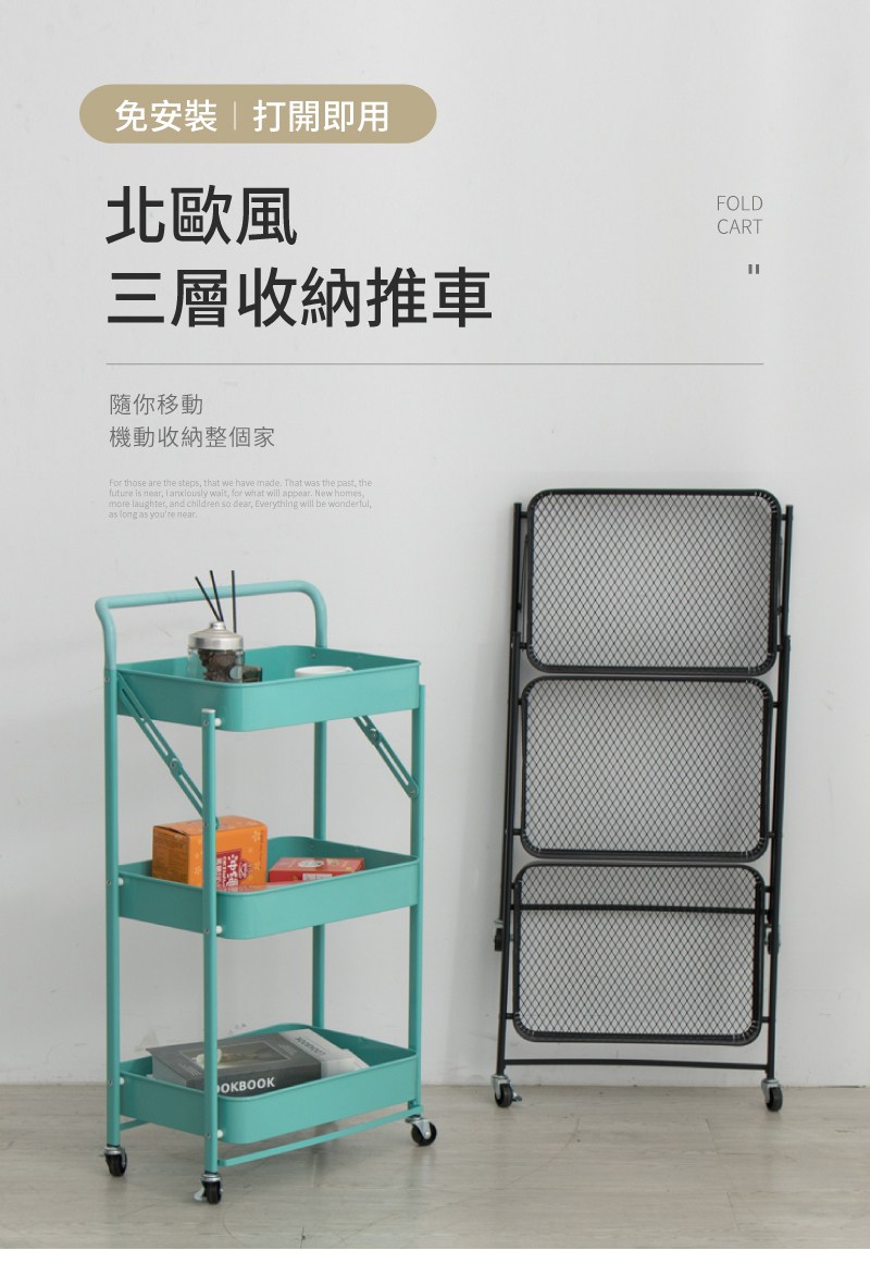 ??快速出貨?? 公司貨 可折疊置物架免安裝多層書桌旁可移動收納架子客廳廚房置物小推車