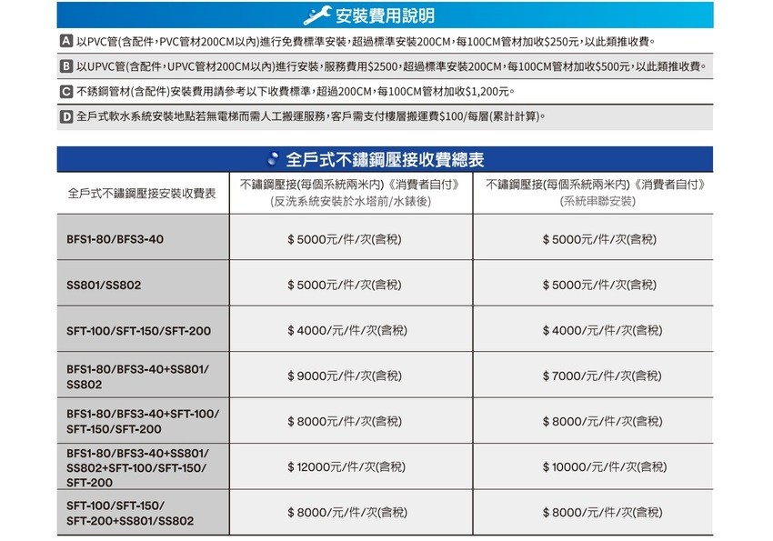(例如:水壓過小時會建議自費加裝馬達、水壓過大時會建議自費加裝減壓閥)