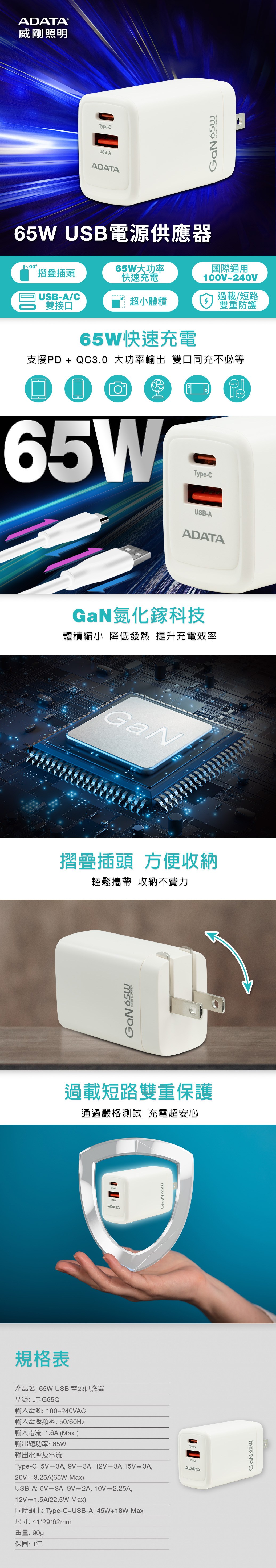 威剛P33 USB-C/A 33W雙孔PD快速充電器